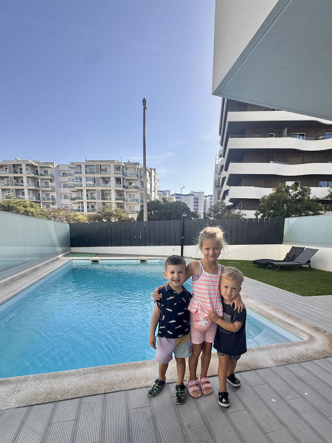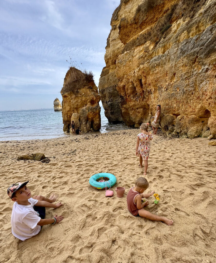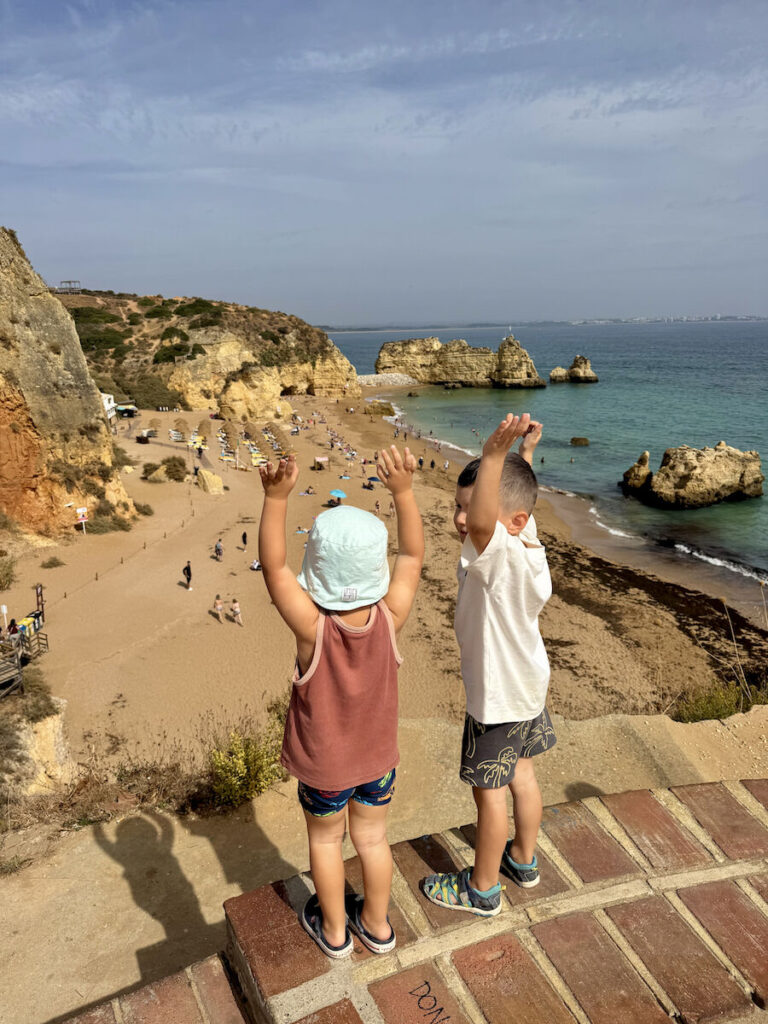 My sme si vybrali mesto Portimão a pláže Praia Dos Tres Irmaos so susednou Prainha sa stali našimi najobľúbenejšími – viď popis nižšie. S kamarátkou sme cez Airbnb rezervovali krásny moderný apartmán s 2 spálňami, 2 kúpeľňami, spojenou kuchyňou s obývačkou a jedálenskou časťou a veľkou terasou. Pod apartmánovým domom bol k dispozícii bazén (nevyhrievaný), deti sa v ňom párkrát okúpali. Parkovanie je na ulici pred apartmánom, alebo pár krokov ďalej na hlinenom parkovisku zdarma – tam bolo stále voľné miesto. Majiteľ nám pripravil na privítanie fľašu vína, džúsy a snacky – potešilo. :) Komunikácia s ním bola perfektná, iniciatívne sa pýtal, či niečo nepotrebujeme a veľmi rýchlo odpovedal na všetky otázky cez správy v appke Airbnb. K najbližšiemu veľkému supermarketu či pláži to bolo pár minút autom.