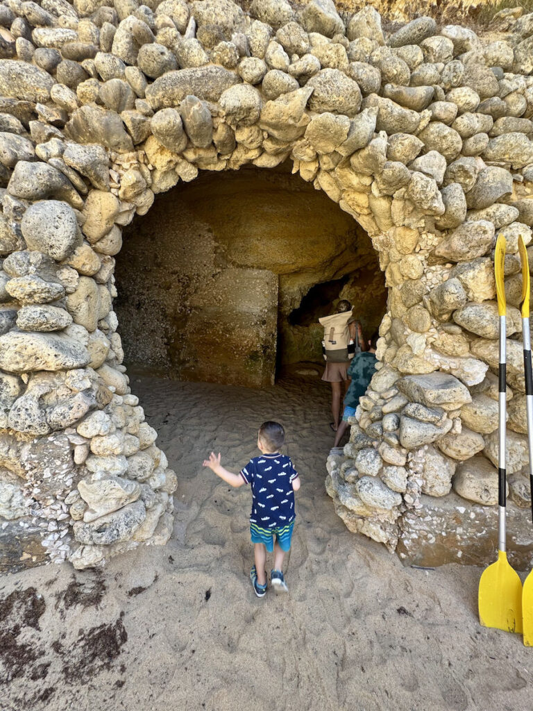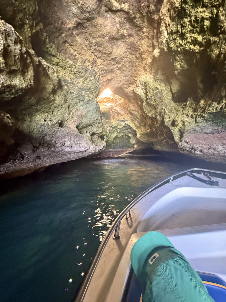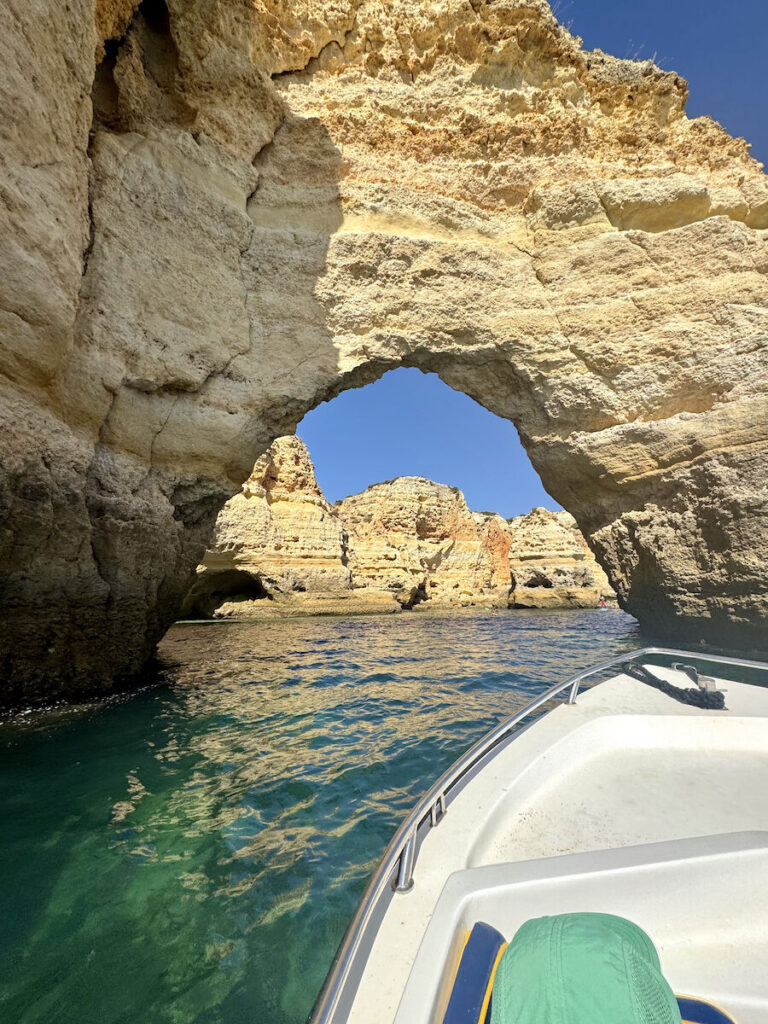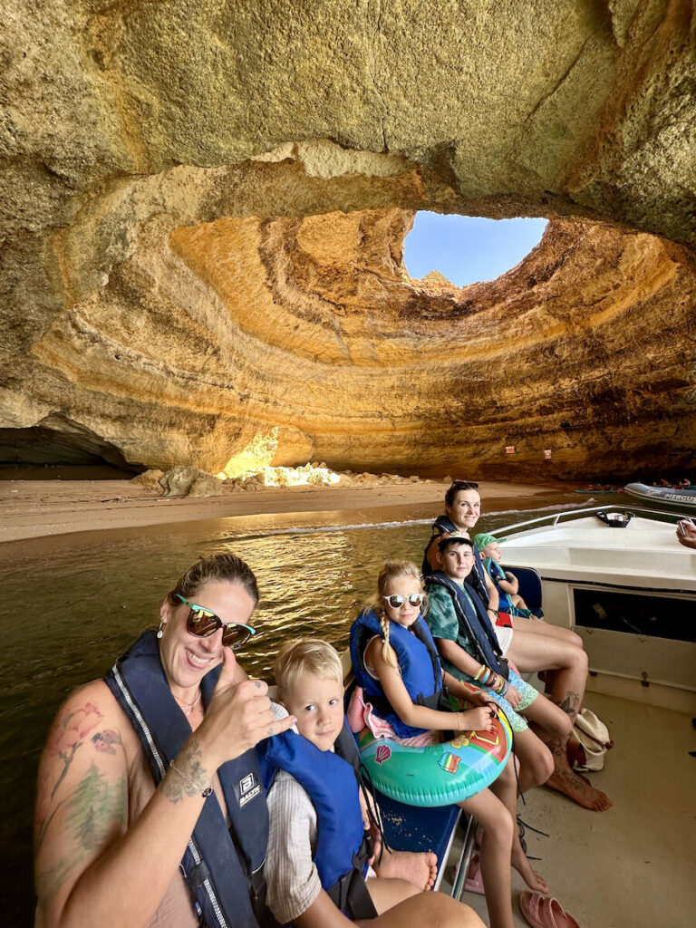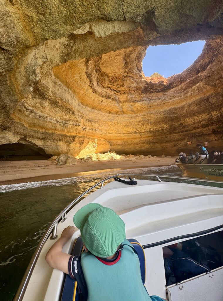My sme si zvolili 30-minútovú plavbu, počas ktorej sme vošli do pár jaskýň vrátane krásnej Benagil Cave a okolo viacerých preplávali. Bola to super voľba, s deťmi časovo akurát a všetkých zaujala. Prešli sme loďou popri Praia da Marinha, pozreli si ju od mora, kapitán otočil loď a už väčšou rýchlosťou šiel naspäť na pláž, z ktorej sme nastupovali. Počas plavby sme všetci mali na sebe vesty. Plavba stála 20 eur/dospelú osobu, 15 eur/dieťa, dvojročný neplatili nič. Platili sme až na mieste, nemali sme nič rezervované vopred, no predpokladám, že počas leta je lepšie mať plavbu vopred rezervovanú.