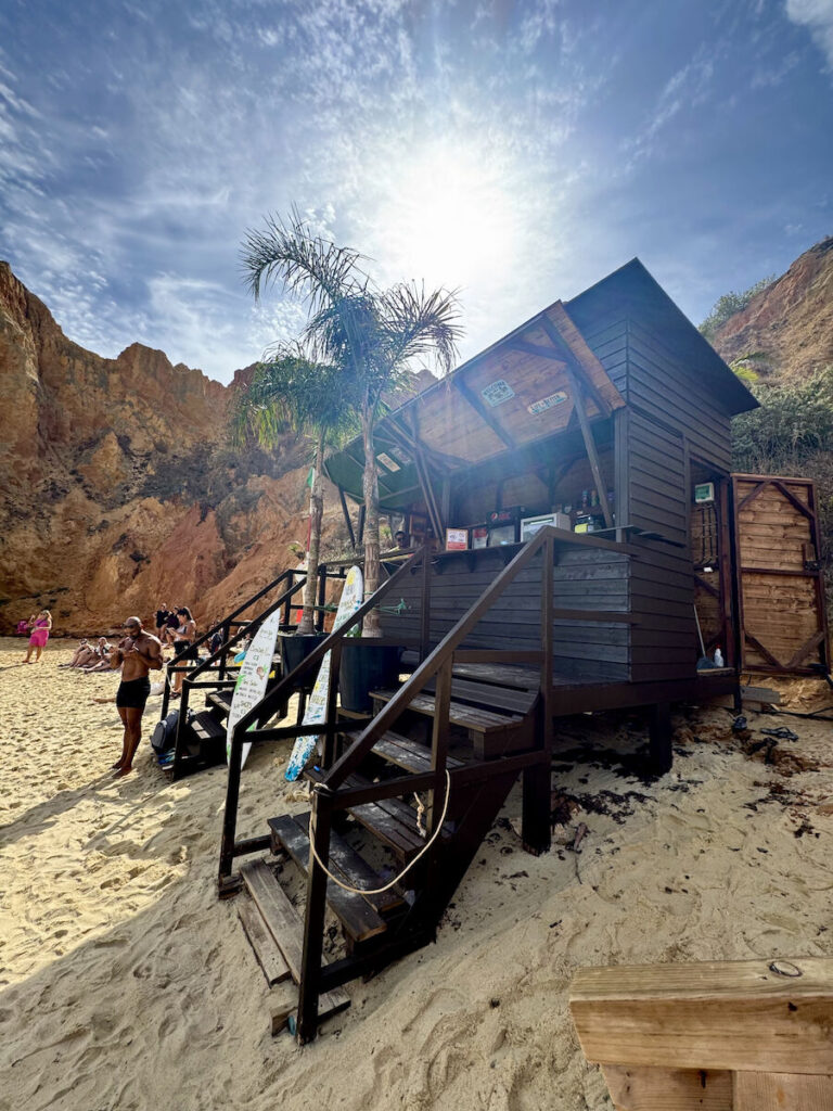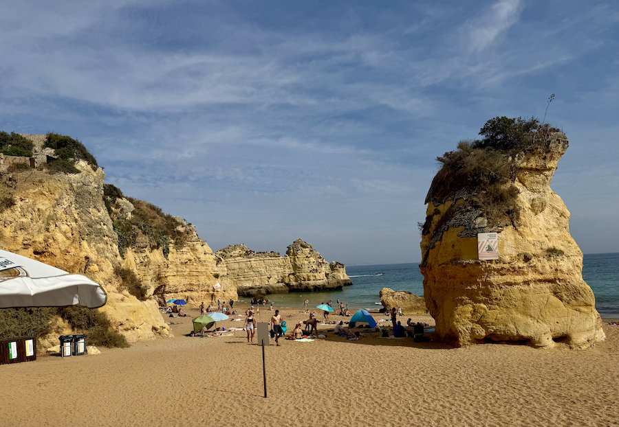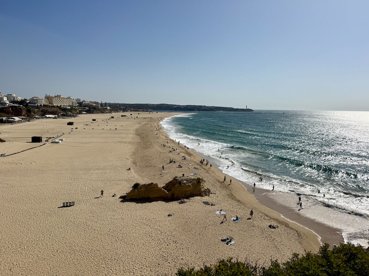 Pláž, ktorá sa nám páčila asi najviac, plná skalných tunelov a jaskýň. Nájdete tu reštaurácie a plážové bary a lehátka. Chodili sme do časti pri reštaurácii Sol e Sombra. V ľavej časti nájdete skalné tunely, skaly a menšie pláže skvelé na objavovanie. Prieskumníkov môže potešiť množstvo zaujímavých mušlí pri brehu, ktoré sa ukážu hlavne počas odlivu. Pravá časť pláže je široká, príjemná na kúpanie. Nezabudnite ochutnať šišky Bola de Berlim plnené vanilkovým krémom, ktoré na pláži predáva starší pán z vozíka. Sú výborné! A odporúčam zostať do západu slnka, má to tam svoje čaro, obzvlášť v časti medzi skalami.