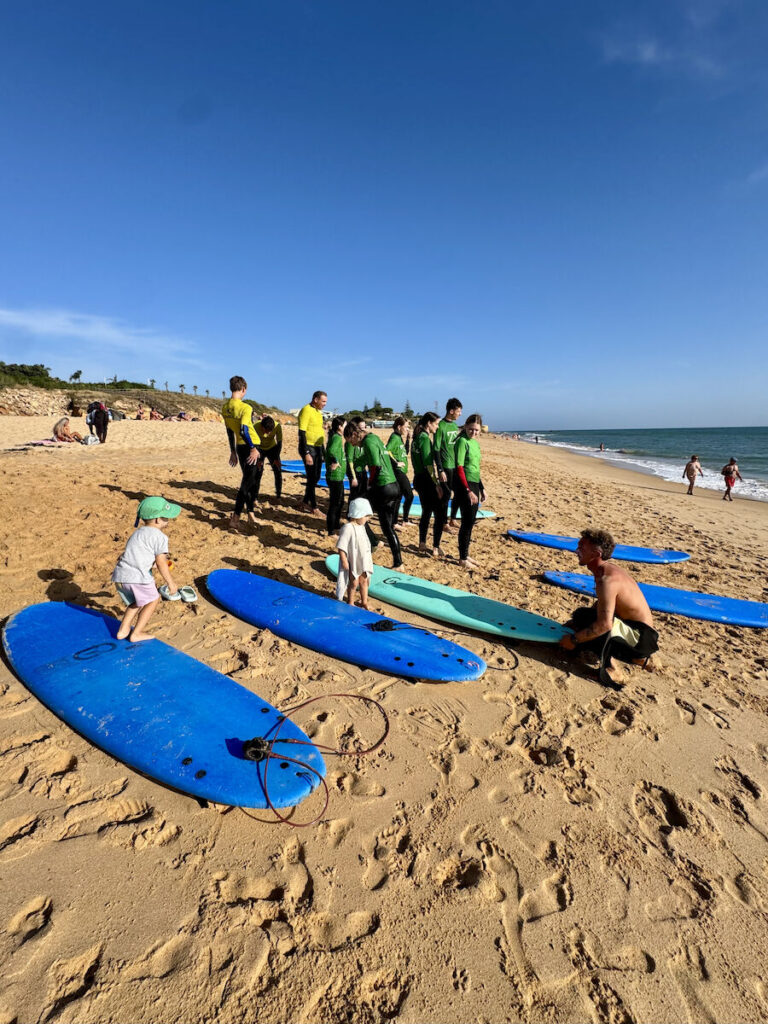 Ak máte radi adrenalín a máte aspoň trocha kondičky, vyskúšajte surfovanie v niektorej zo škôl na pobreží. Kamarátka skúsila 2-hodinový kurz na pláži Praia da Galé v škole surfingu Surf and Sup Albufeira, 2 hodiny stáli 40 eur. V daný deň im napísala cez WhatsApp a dohodli sa, o ktorej príde, v skupinke s 1 inštruktorom ich bolo asi 10. Prvá časť bola rozcvička a teória na pláži, potom už každý skúšal chytať prvé vlny – ak bolo treba, s pomocou inštruktora. Niekomu to šlo celkom fajn, iní sa neudržali po stojačky takmer vôbec – chce to tréning. :)