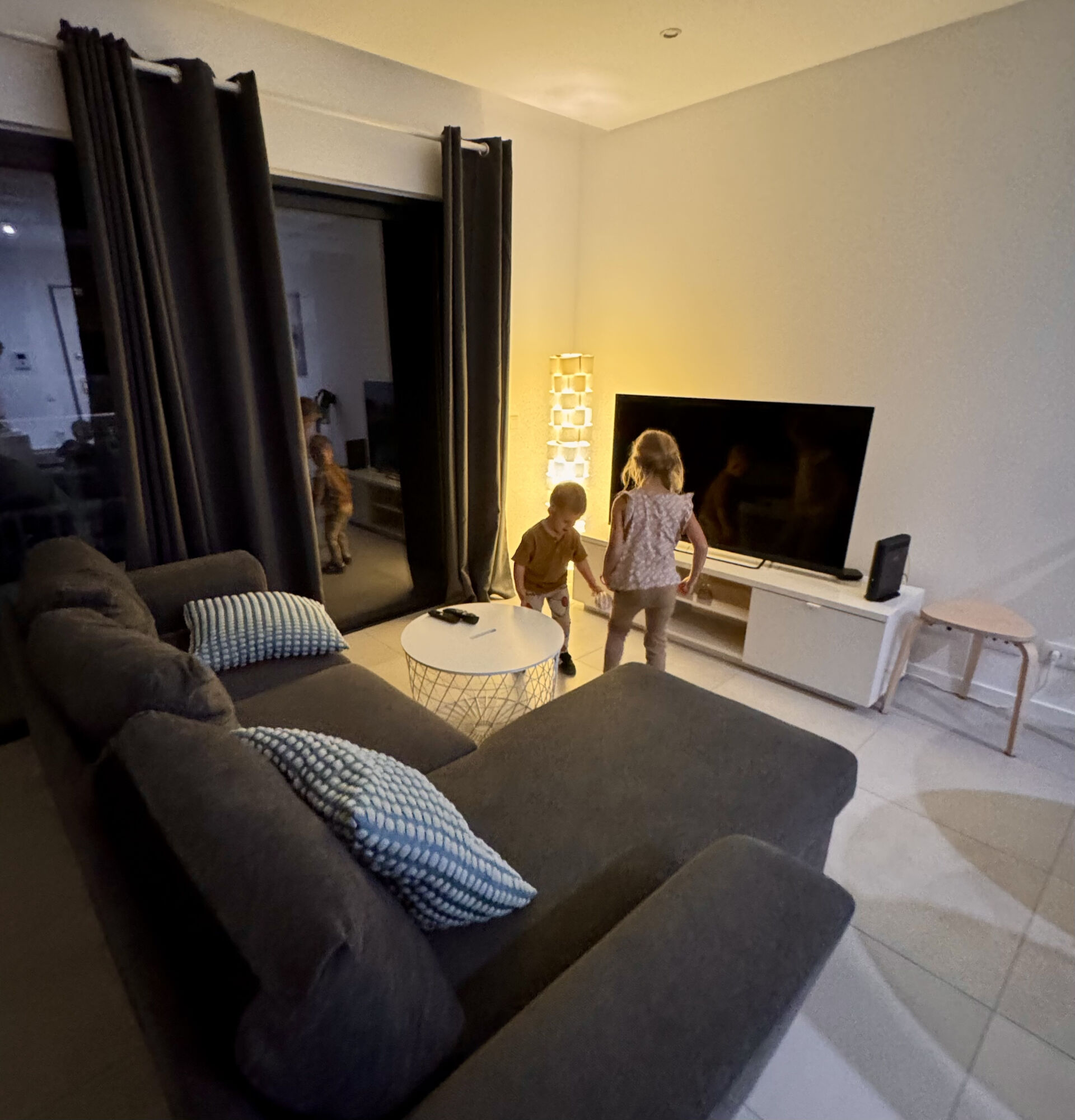 Apartmán stál v októbri 435 eur za 6 nocí, každá sme teda platili 218 eur za svoju izbu pre 1 dospelú osobu a 2 deti. Počas leta však stojí o dosť viac. Link na apartmán je tu >>