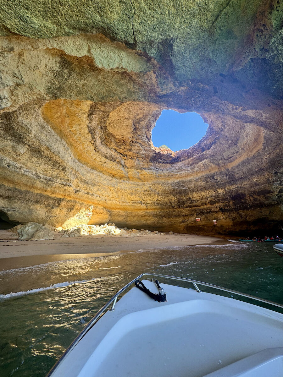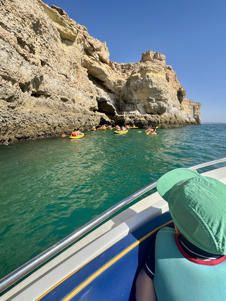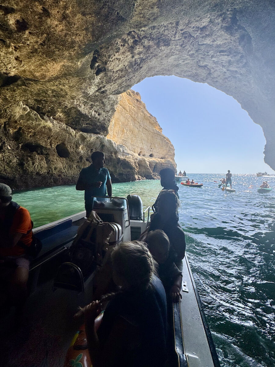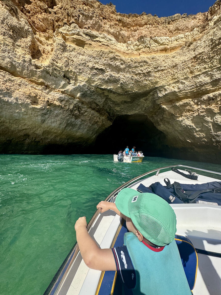 My sme si zvolili 30-minútovú plavbu, počas ktorej sme vošli do pár jaskýň vrátane krásnej Benagil Cave a okolo viacerých preplávali. Bola to super voľba, s deťmi časovo akurát a všetkých zaujala. Prešli sme loďou popri Praia da Marinha, pozreli si ju od mora, kapitán otočil loď a už väčšou rýchlosťou šiel naspäť na pláž, z ktorej sme nastupovali. Počas plavby sme všetci mali na sebe vesty. Plavba stála 20 eur/dospelú osobu, 15 eur/dieťa, dvojročný neplatili nič. Platili sme až na mieste, nemali sme nič rezervované vopred, no predpokladám, že počas leta je lepšie mať plavbu vopred rezervovanú.