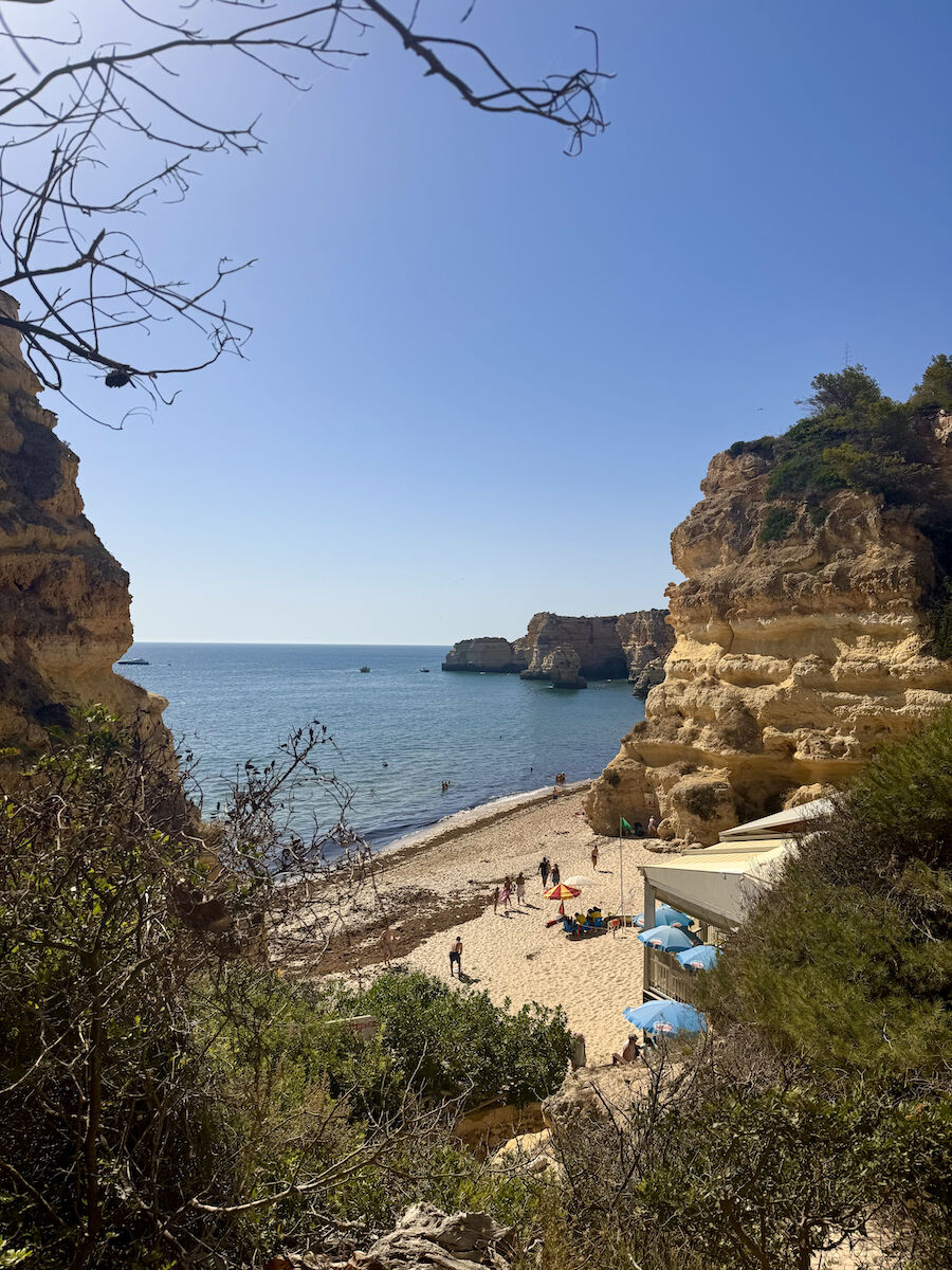 Pláž, ktorá sa nám páčila asi najviac, plná skalných tunelov a jaskýň. Nájdete tu reštaurácie a plážové bary a lehátka. Chodili sme do časti pri reštaurácii Sol e Sombra. V ľavej časti nájdete skalné tunely, skaly a menšie pláže skvelé na objavovanie. Prieskumníkov môže potešiť množstvo zaujímavých mušlí pri brehu, ktoré sa ukážu hlavne počas odlivu. Pravá časť pláže je široká, príjemná na kúpanie. Nezabudnite ochutnať šišky Bola de Berlim plnené vanilkovým krémom, ktoré na pláži predáva starší pán z vozíka. Sú výborné! A odporúčam zostať do západu slnka, má to tam svoje čaro, obzvlášť v časti medzi skalami.