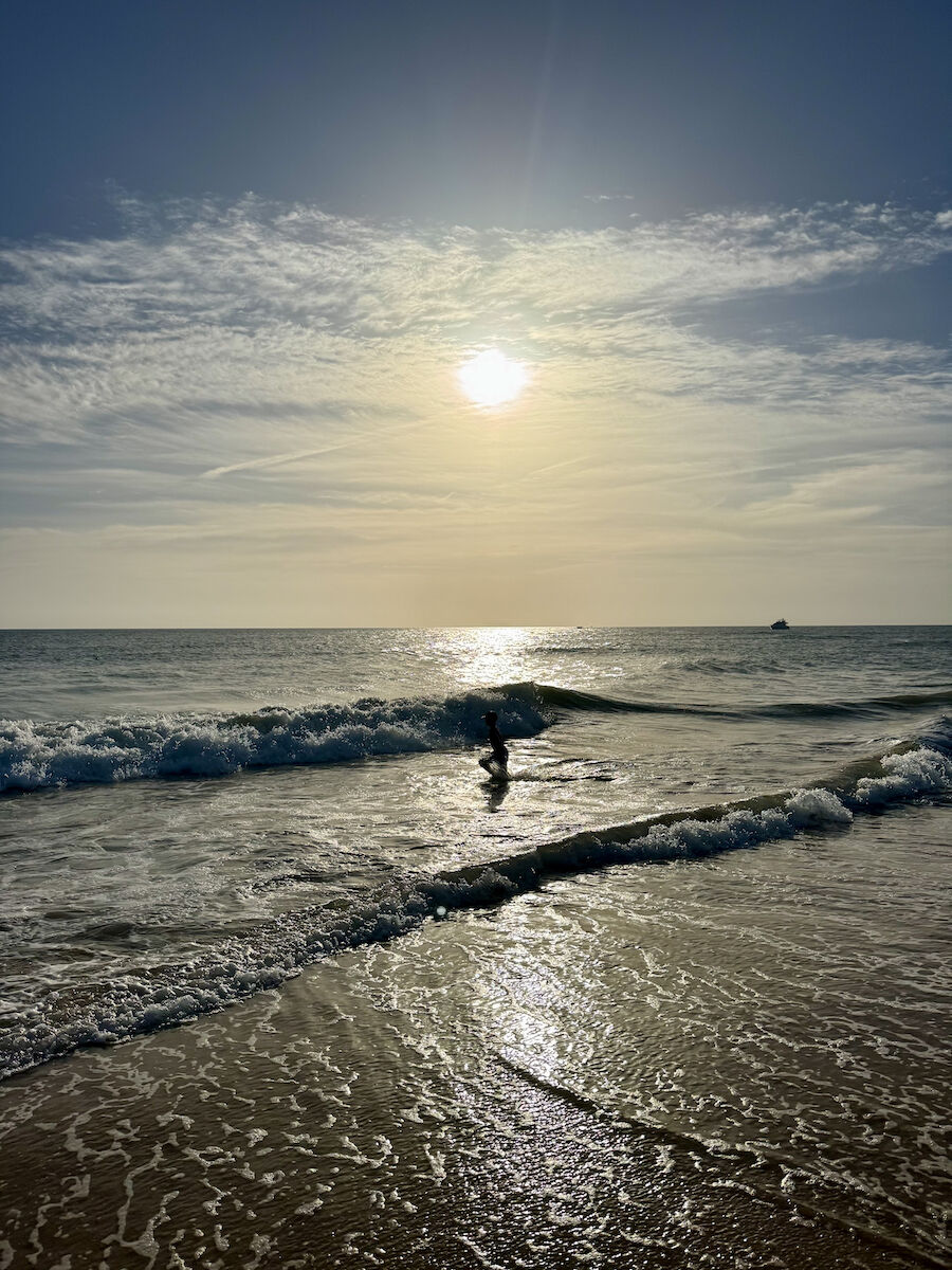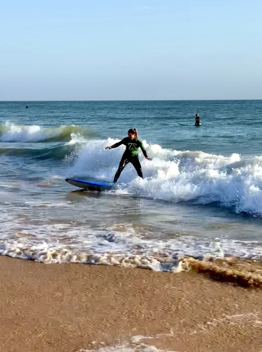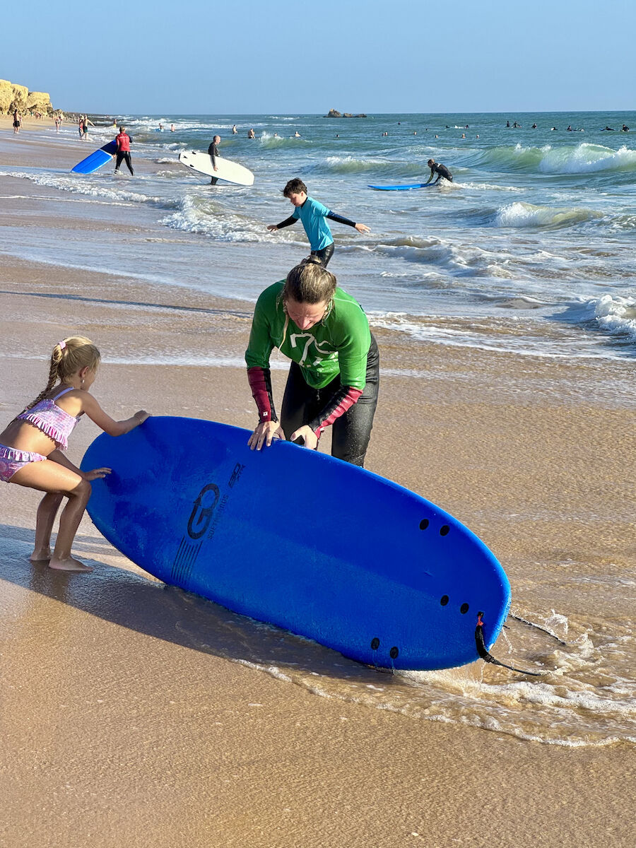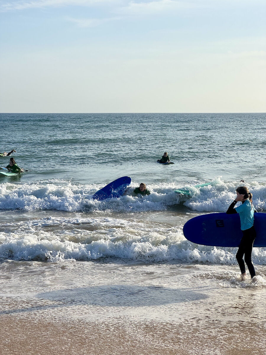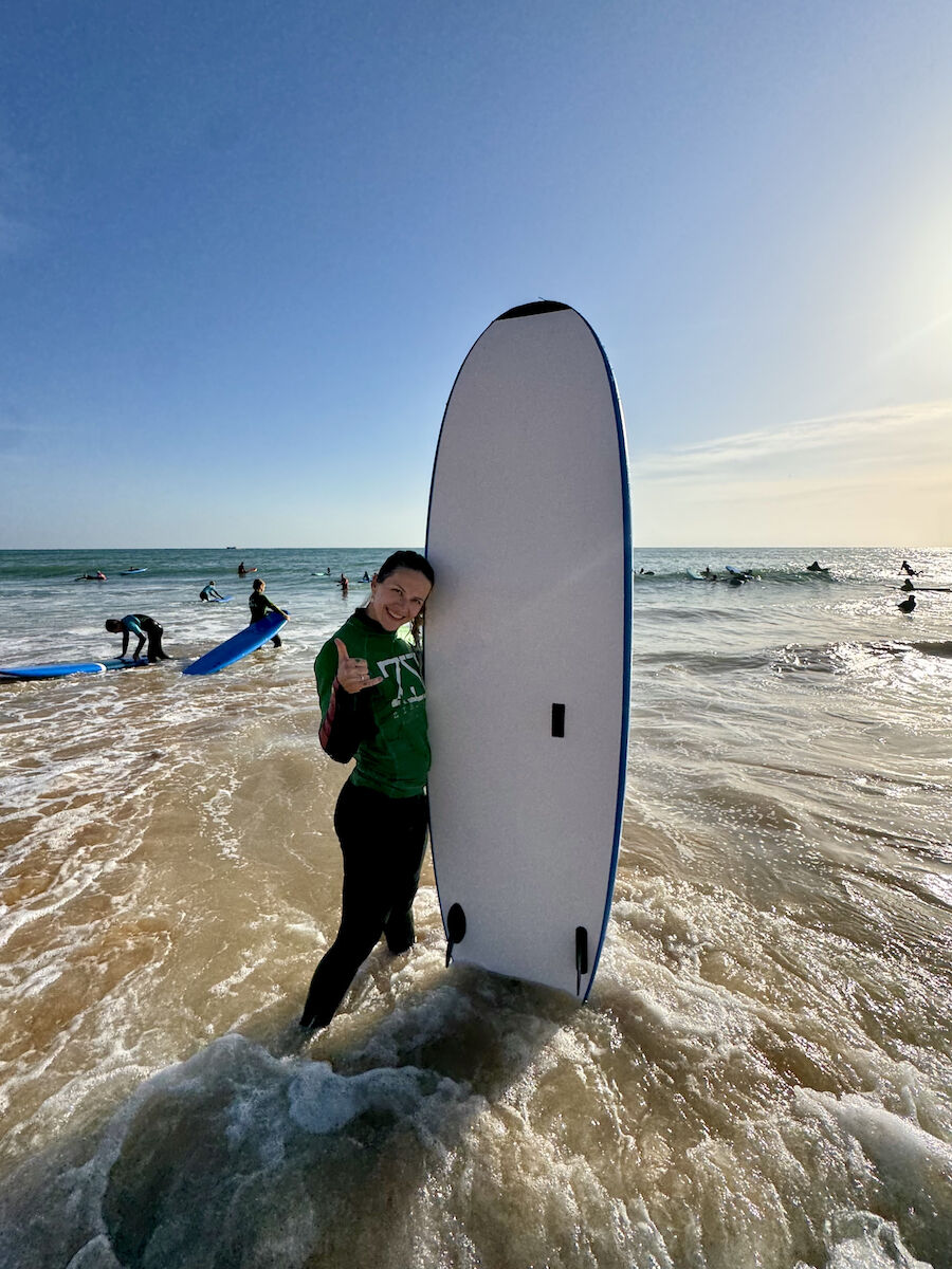 Ak máte radi adrenalín a máte aspoň trocha kondičky, vyskúšajte surfovanie v niektorej zo škôl na pobreží. Kamarátka skúsila 2-hodinový kurz na pláži Praia da Galé v škole surfingu Surf and Sup Albufeira, 2 hodiny stáli 40 eur. V daný deň im napísala cez WhatsApp a dohodli sa, o ktorej príde, v skupinke s 1 inštruktorom ich bolo asi 10. Prvá časť bola rozcvička a teória na pláži, potom už každý skúšal chytať prvé vlny – ak bolo treba, s pomocou inštruktora. Niekomu to šlo celkom fajn, iní sa neudržali po stojačky takmer vôbec – chce to tréning. :)