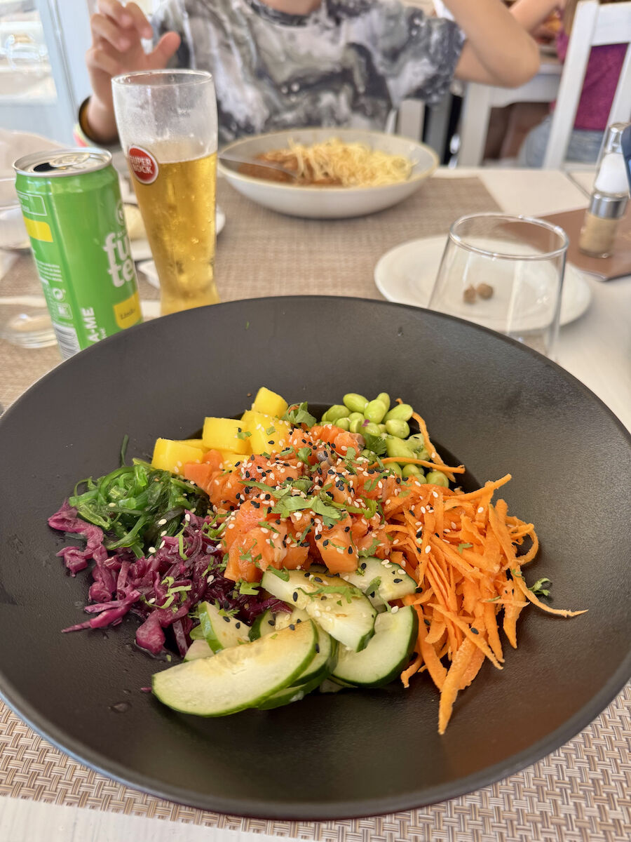 Zaujímavá pláž plná skál trčiacich z mora so zaujímavou časťou na objavovanie na pravej strane, kde však treba preliezť cez skalu, aby ste sa dostali do ďalšej časti. Menším deťom treba pomôcť, ostatní to zvládli v pohode, určite to stojí za preskúmanie. Na pláži sú lehátka a reštaurácia. Super miesto na celodenný pobyt.